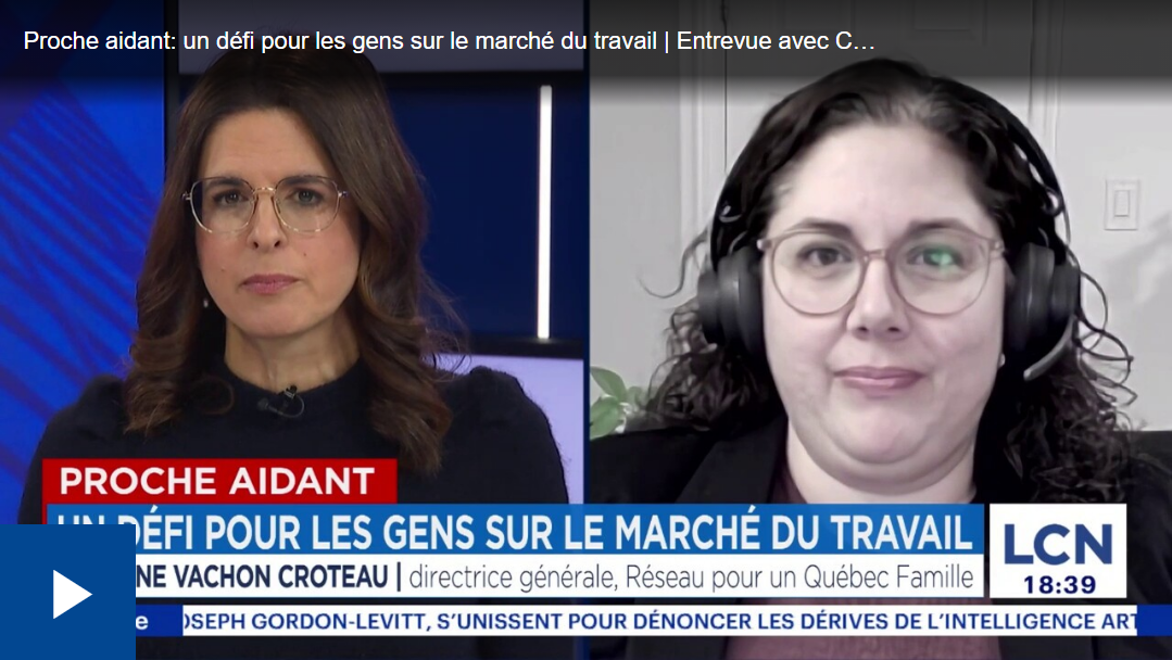 Dans une société vieillissante, de plus en plus de Québécois jonglent entre emploi et rôle de proche aidant, mais beaucoup se taisent par peur du jugement au travail, alerte la directrice générale du Réseau pour un Québec Famille.